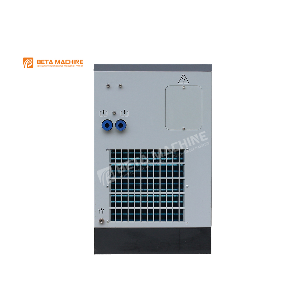 The heat-exchanged compressed air flows into the evaporator and exchanges heat with the refrigerant through the heat exchange function of the evaporator. The heat in the compressed air is taken away by the refrigerant, and the compressed air is rapidly cooled.The moisture in the humid air condenses quickly when it reaches the saturation temperature. The condensed moisture forms water droplets after condensation. After the unique air-water separator rotates at high speed, the moisture is separated from the air due to centrifugal force. After separation, the water is discharged from the automatic drain valve.The air pressure dew point after cooling can reach a minimum of 2℃