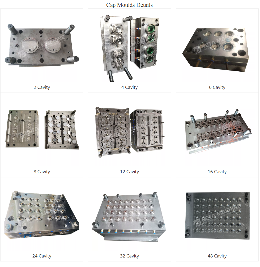 – We have significant experience in the manufacture of cap molds for different types of closures by customer’s demand.- All the heating elements of the mould is adopted high quality famous brand from well-known supplier in domestic market or oversea market.Moving part with high precise maching to make sure be interchangeable.