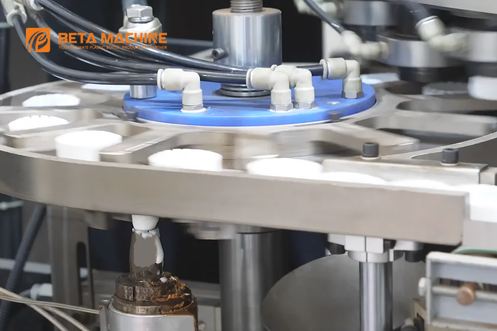 This folding machine is specially developed for those complex lids hard to match with bottle because the built-in anti-theft ring extends outward.